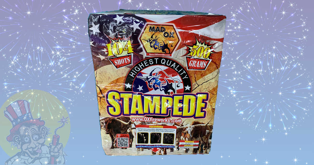 104 FAST AND FURIOUS SHOTS, ALTERNATING VOLLEYS OF COLORED PEARLS, WHISTLES AND LARGE SHELLS. SUPER PERFORMANCE!